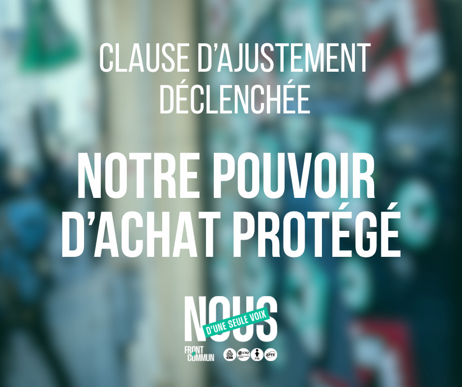 Statistique Canada a diffusé aujourd’hui même l’indice des prix à la consommation (IPC Québec) pour le mois de mars 2026. Les résultats confirment que le seuil de déclenchement du mécanisme de protection de notre pouvoir d’achat, réintroduit dans nos conventions collectives par le Front commun, est officiellement franchi.